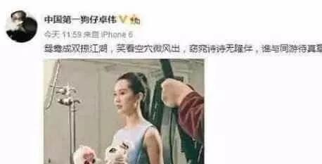在卓伟手上被办掉的艺人确实不少,有男有女,这一点还是佩服他的。卓伟甚至都爆料过王宝强(专题)收到过暗杀的生命威胁,可见其狗仔工作的认真程度。一时间中国第一狗仔名号到了他头上。然而,在刘诗诗这里卓伟名号却不好使了。卓伟曾经多次暗示刘诗诗出轨,2014年甚至发微博:鸳鸯成双掠江胡,笑看空穴傲出风,窈窕诗诗无隆伴,谁与同游待真章?