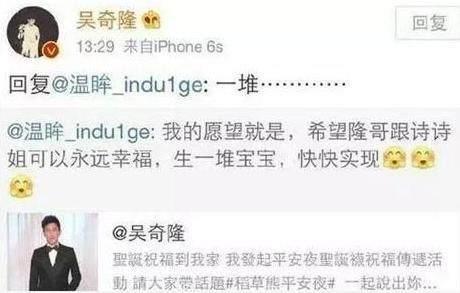 不过前些日子,吴奇隆突然松口,还回复粉丝的祝福说,要生一堆娃,要三年生三。吴奇隆想当爸爸的心,可想而知!